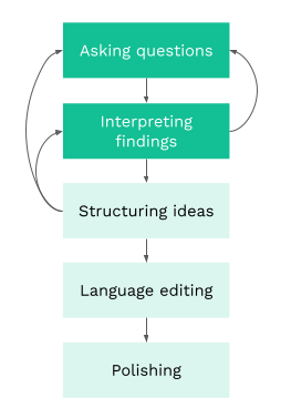 • Interpreting findings: Answering the questions using the available knowledge — your findings (results) and other people’s findings (literature). This is the generative work of making sense of results within the questions you asked. In practical terms, this means drafting the Results and Discussion.